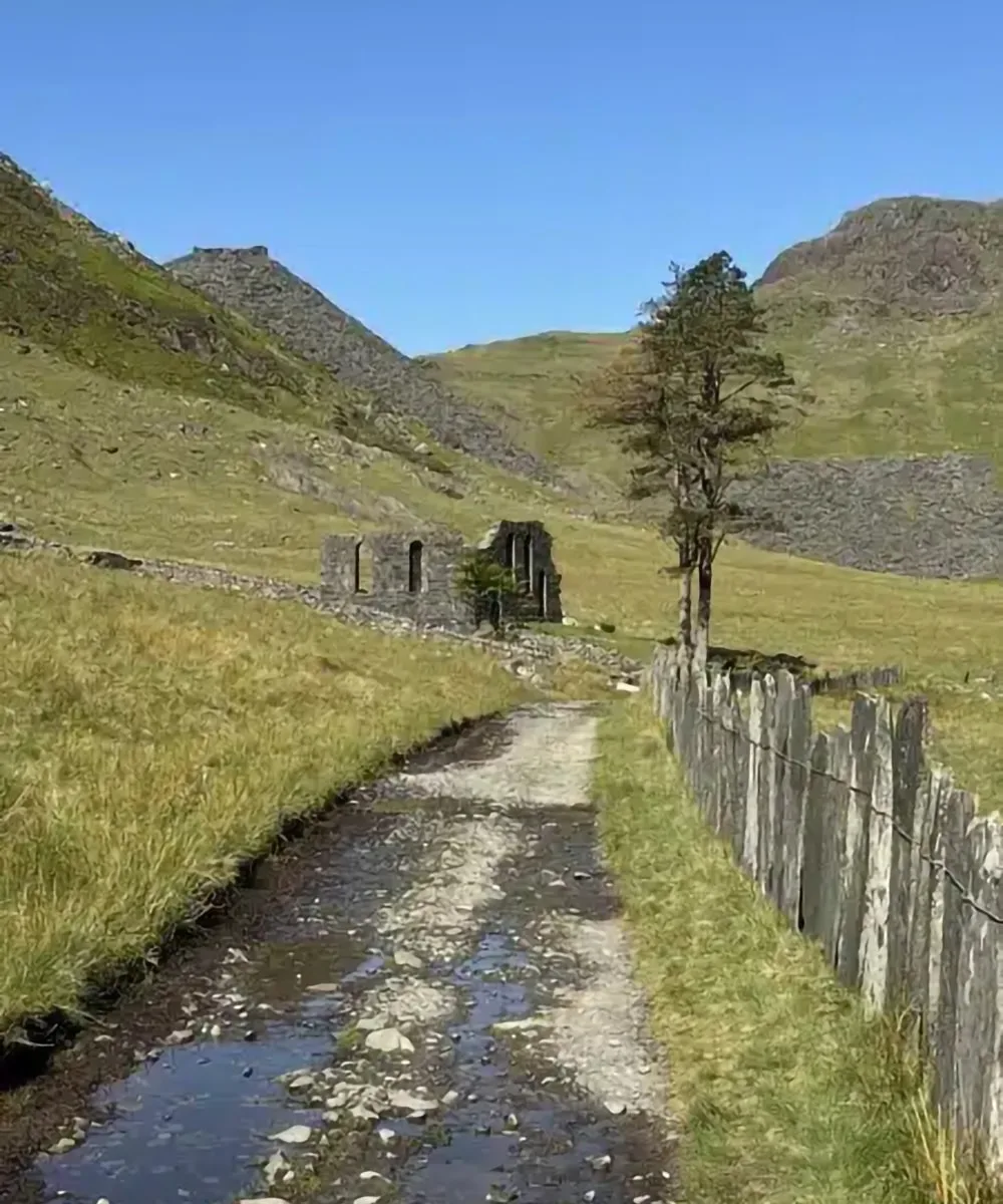A imagem do banner mostra a distinta pedra em forma de cantilever no cume de Glyder Fach, uma massa de rochas destacada como a entrada para a Toca do Dragão no filme Dragonslayer, da Disney, de 1981. A natureza também cria padrões nos quais os humanos atribuem e investem significado. A imagem de abertura é da Trilha da Ardósia em Eryri e uma das seções fascinantes que sobe de Tanygrisiau ao longo das margens de Llyn Cwmorthin, passando por uma das maiores áreas de exploração de ardósia da região. É, de fato, um vale escondido e uma das minhas caminhadas favoritas, seja o circuito em alto nível do vale ou, nesta ocasião, até Moelwyn Mawr e Moelwyn Bach, antes de retornar pela Barragem de Stwlan, um elemento vital da usina hidrelétrica. Tecnologia moderna, com aquela de um século anterior, em uma paisagem que ainda reflete a vida rural rigorosa dos criadores de ovelhas, que persiste desde a Idade Média. Para mais informações sobre a história desta área, consulte este site.